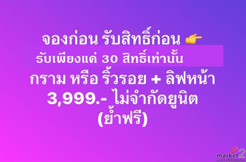 จองก่อนสิทธิ์เต็ม กรามหรือริ้วรอย 3999.- ไม่จำกัดยูนิต ย้ำฟรี
