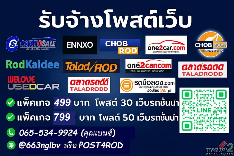 แพ็กเกจ A 499 บาท • โพสต์ 30 เว็บรถชั้นนำ เช่น one2car, chobrod, taladrod เหมาะกับผู้ต้องการขายรถ งบจำกัด