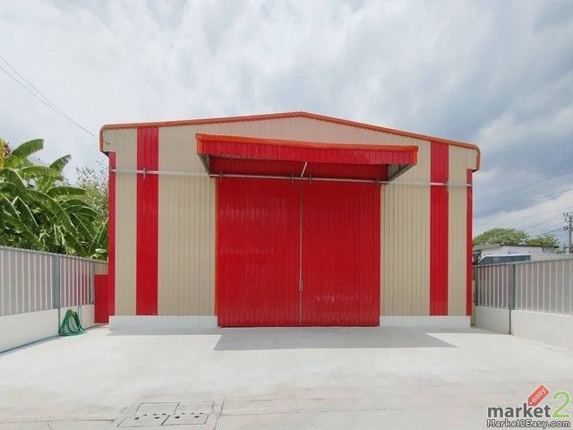 - ประตูหน้าบานเลื่อนคู่กว้าง 6 ม สูง 4.5 ม