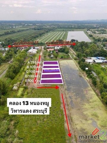 ที่ดินแบ่งขาย 100ตรว. 1.9แสน฿ คลอง 13 หนองหมู วิหารแดง สระบุรี ติดเขตหนองเสือ o86-3ol-6l6l