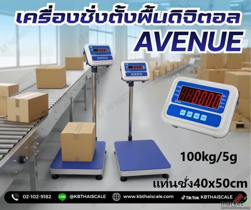 เครื่องชั่งน้ำหนัก เครื่องชั่งดิจิตอล เครื่องชั่งตั้งพื้น (แท่นชั่งมีระดับน้ำ) ชั่งได้ 100kg ค่าละเอียด 5g ขนาดแท่น 40x50cm ยี่ห้อAVENUE รุ่น AV Series พิกัด 100kg/5g