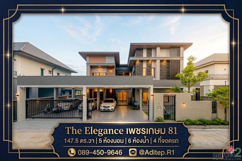 ขายบ้านหรู The Elegance เพชรเกษม 81 ขนาด 147 ตร.ว. 5 ห้องนอน 6 ห้องน้ำ 4 ที่จอดรถ บ้านสร้างใหม่ปีเดียว พร้อมเฟอร์บิวต์อิน