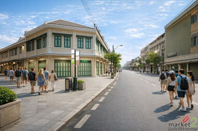 MRT Wat Mangkon 350m Sampeng Market 900m. commercial rental space Floor 1 only. Bus stop sign on Yaowarat Rd. 14 sq.wah 55sq.m suitable for retail cafe 74,999-79,999B-M shared bathroom located in a dense community near offices convenient transportation close MRT lifestyle hubs land size usable area efficient layout with good frontage for business visibility and display