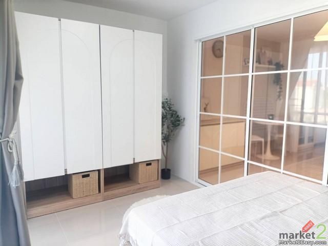 พื้นที่ใช้สอย 33 ตารางเมตร ตึก D2 ชั้น 3 (จาก 9 ชั้น) จำนวน 1 ห้องนอน 1 ครัวบิวท์อิน 1 ห้องน้ำ เฟอร์นิเจอร์ใหม่ทั้งหมด แต่งสไตล์มินิมอล ระเบียงหันทางทิศตะวันออก