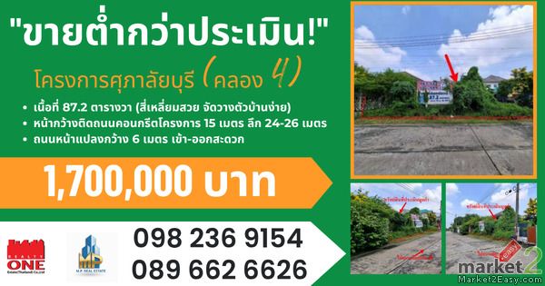 ที่ดิน 87.2 ตร.ว. โครงการศุภาลัยบุรี (คลอง 4)
