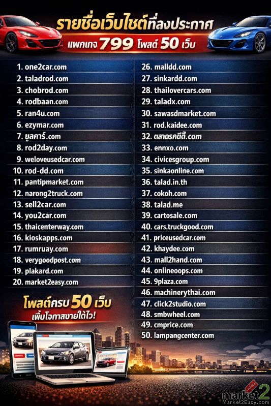แพ็กเกจ A 799 บาท • โพสต์ 50 เว็บรถชั้นนำ เพิ่มโอกาสขายยิ่งขึ้น