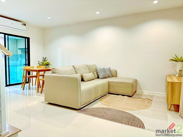 ทาวน์โฮม 3 ชั้น ลาดกระบัง สุวรรณภูมิ ตั้งอยู่ซอยแรกของโครงการ ติดถนนใหญ่ เข้าออกสะดวก ตัวบ้านหน้ากว้าง 5.5 เมตร เพดานสูง โปร่งโล่ง อยู่สบาย