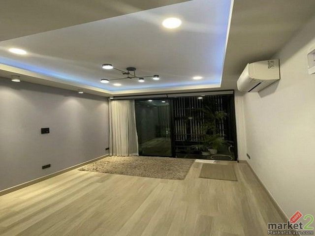 ชั้นล่าง : พื้นที่ office และ 2 executive office rooms, open space meeting room , 2 ห้องน้ำ, kitchen and courtyard.