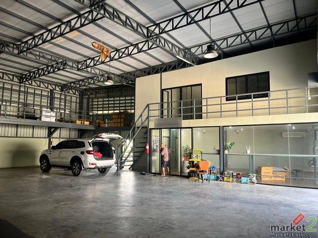 โกดังขนาด 600 ตรม. ออฟฟิศ 2 ชั้น ไฟฟ้า 3 เฟส มีกล้อง CCTV 19 จุด ประตูระบบไฟฟ้า ไฟส่องสว่างรอบอาคาร ปั๊มน้ำและถังเก็บน้ำครบชุด เหมาะสำหรับโกดังเก็บสินค้าหรือศูนย์กระจายสินค้า รถเทรลเลอร์เข้าออกได้