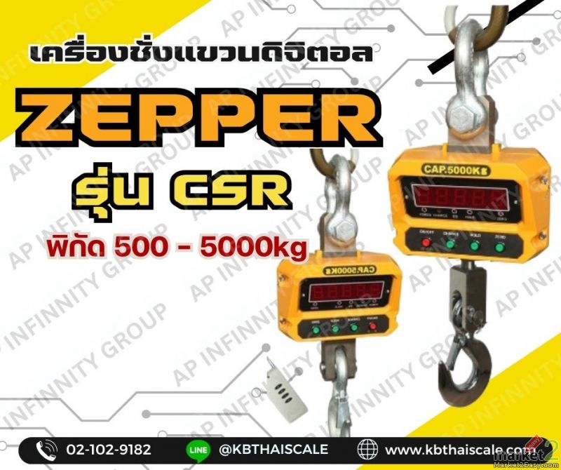 เครื่องชั่งแขวน 5 ตัน เครื่องชั่งน้ำหนัก เครื่องชั่งดิจิตอลแบบแขวน ตาชั่งแขวน พิกัด 5000kg ค่าละเอียด 1kg ยี่ห้อ ZEPPER รุ่น CSR 5000kg/1kg (ผ่านการตรวจรับรองจากสำนักงานกลางชั่งตวงวัด)