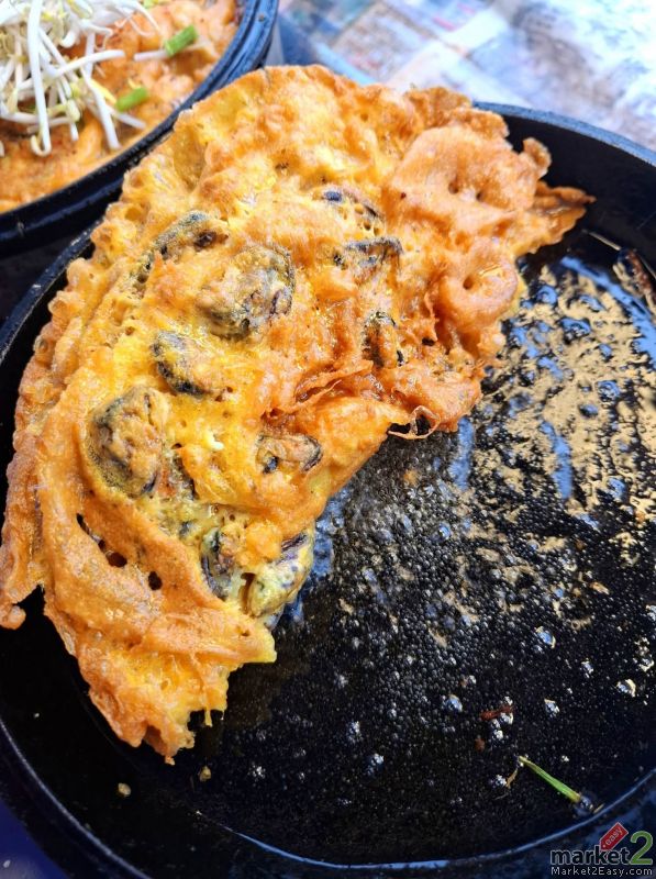 หอยทอดกระทะร้อนสูตรแป้งเหลืองทอง มีกลิ่นหอมชวนหิวกรอบไม่แข็งกระด้างไม่อมน้ำมัน
