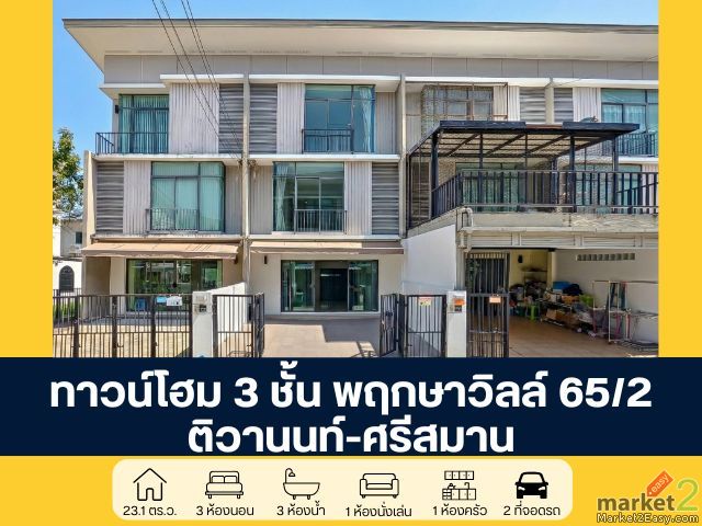 การเดินทาง : • ทางด่วน : ทางพิเศษอุตรภิมุข , ทางยกระดับอุตราภิมุข • รถไฟฟ้า สายสีแดง สถานีดอนเมือง กม.4 เพียง 6.7 กิโลเมตร • เดินทางได้หลายเส้นทาง ถนนศรีสมาน,ถนนสรงประภา,ถนนติวานนท์ ที่ตั้ง : โครงการพฤกษาวิลล์ 65/2 ติวานนท์ - ศรีสมาน ซอยศรีสมาน 3 ถนนศรีสมาน ตำบลบ้านใหม่ อำเภอปากเกร็ด จังหวัดนนทบุรี