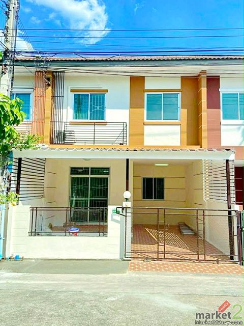 Safari Panya. Two-story townhouse 3bed near MRT KhuBon 900m. Along Khlong Song, 2 bath 18sq.wa. 150sq.m. newly renovated house beautiful condition 11,999 B-M located along Khlong Song canal near community areas Hathaimit Market 900 m. schools and complete amenities suitable for residence or home office convenient transportation connecting to multiple routes