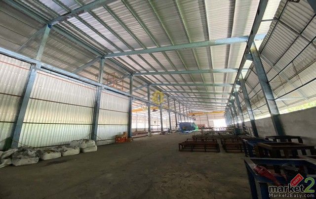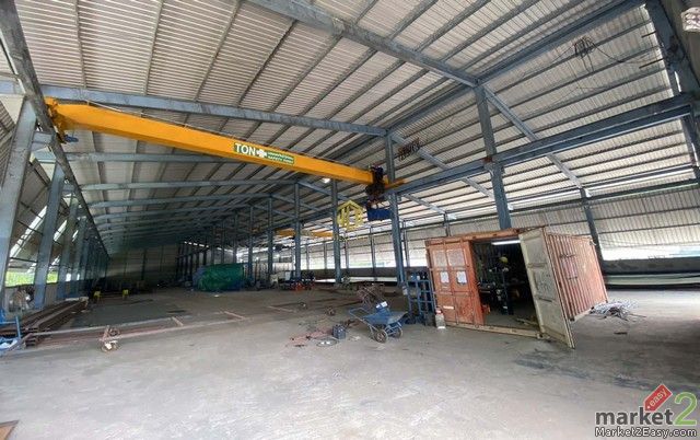 โกดังขนาด 3600 ตรม. มีออฟฟิศชั้นเดียวแยกตัวจากตัวโรงงาน มีห้องพักคนงาน 10 ห้อง ปรับพื้นที่แล้วพร้อมใช้งาน มีไฟฟ้า รั้วรอบพื้นที่ อาคารโรงงานเป็นโครงเหล็กทั้งหมด รถเทรลเลอร์เข้าออกสะดวก