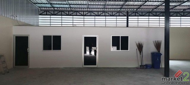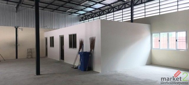 โกดังขนาด 13x32 เมตร มีออฟฟิศ 2 ห้อง ไฟฟ้า 3 เฟส 15/45A มีรั้วปลอดภัย รถเทรลเลอร์เข้าออกได้