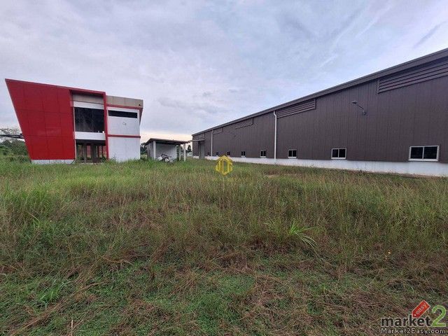 โรงงานขนาด 20x60 เมตร สูง 8.5 เมตร พื้นโรงงานรับน้ำหนัก 3 ตัน/ตรม. มีรางเครนสำหรับ Overhead Crane 3 ตัน ตู้ MDB 700 amp และตู้ MCC 125 amp จำนวน 2 ตู้ หลังคามุงด้วย PU Metal Sheet หนา 1 นิ้ว ออฟฟิศ 2 ชั้น พื้นที่ใช้สอย 500 ตรม. (สร้างเสร็จ 75%) อาคารห้องพักคนงาน 16 ห้อง บ้านขนาด 4 ห้องนอน 3 ห้องน้ำ พื้นที่ใช้สอยรวม 450 ตรม. ไฟฟ้า 3 เฟส หม้อแปลง 400 KVA น้ำประปา