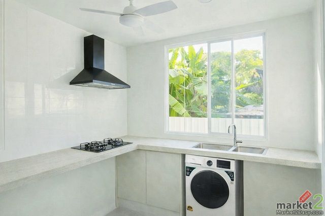 ห้องครัวรับแสงธรรมชาติ อากาศถ่ายเทดี พร้อมฮู้ด และหน้าต่างบานใหญ่