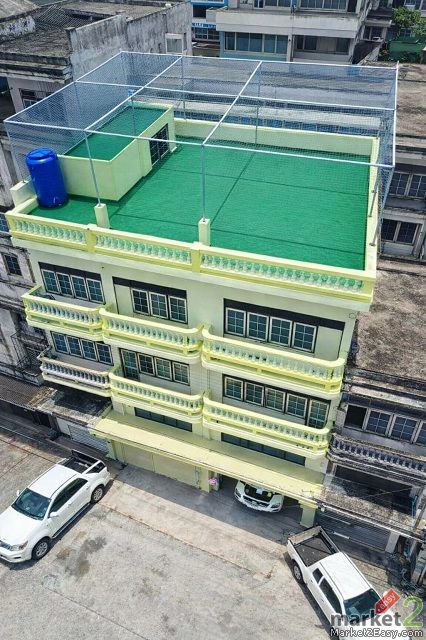 BangKrang Market 500m Prasat Temple Lotus NakhonIn 2km. Rama5 Bridge 4.5story commercial building with 3bed 4bath near Bang Krang Market 500m. 58sq.wa. 400sq.m. 24,999B-M large usable area with rear warehouse space suitable for business retail or storage on Bang Kruai Sai Noi Road convenient transportation near community Wat Bang Krang School 700m.