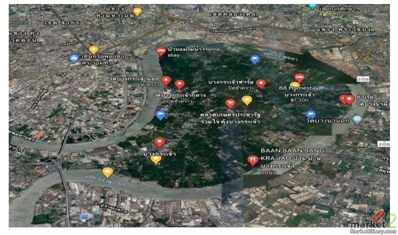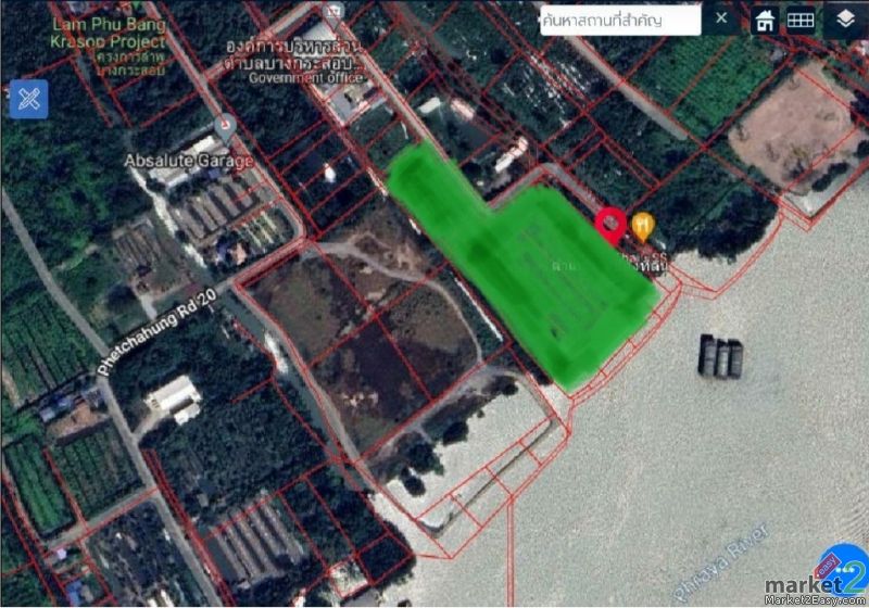ขายที่ดินติดริมแม่น้ำเจ้าพระยา คุ้งบางกระเจ้า ตำบลบางกระสอบ อำเภอพระประแดง จังหวัดสมุทรปราการ