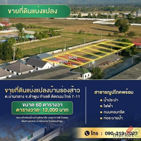 ***ราคาขายเพียงตารางวาละ 12,000 บาท(รายละเอียดอย่างอื่นสามารถตกลงกันได้)