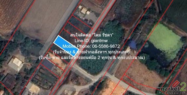 1. ที่ดินรูปทรงสี่เหลี่ยมผืนผ้าติดถนนเป็นโฉนด (น.ส.4 จ) ที่มีเนื้อที่ 0-1-0 ไร่ (100 ตร.ว.) ติดถนนคอนกรีตกว้าง 5 ม.