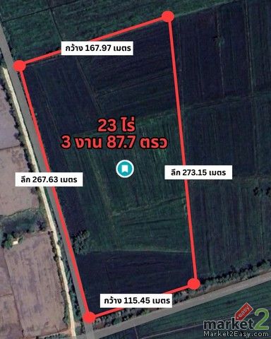 รายละเอียดที่ดิน • เนื้อที่รวม 23 ไร่ 3 งาน 87.7 ตารางวา • ที่ดินผืนเดียวแปลงสวย รูปทรงดีเพราะเป็นสี่เหลี่ยม เกิดประโยชน์สูงสุดในทุกการใช้งาน • ติดถนน 2 ด้าน (ทิศตะวันตก และทิศใต้) • ใกล้ถนนใหญ่สายเอเชีย (ทางหลวงหมายเลข 11) • ทำเลไม่ไกลจากตลาดและชุมชน • น้ำและไฟเข้าถึง สะดวกมาก • น้ำไม่เคยท่วม