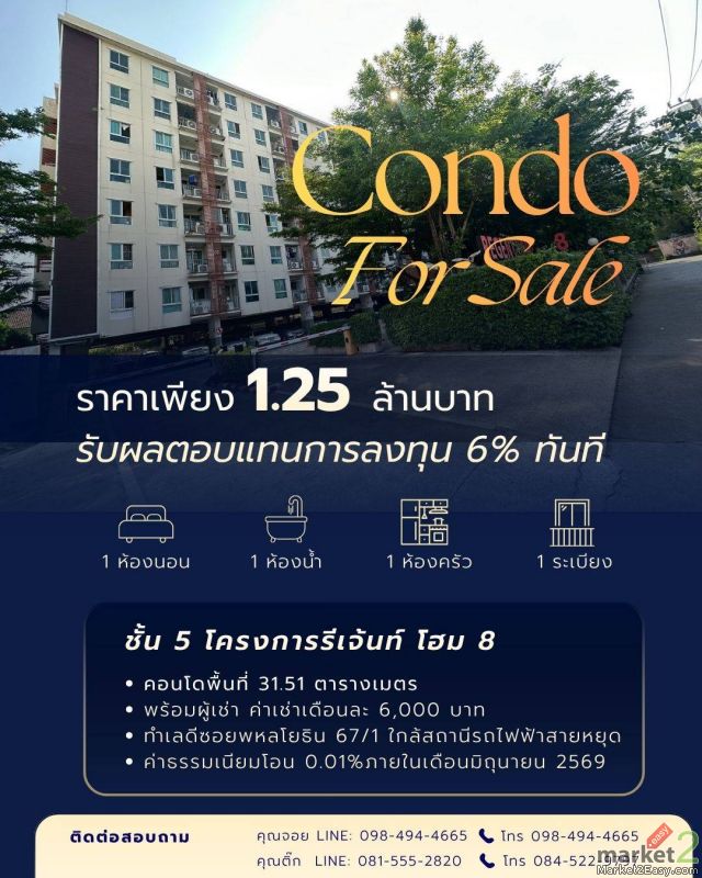 ขายด่วน! คอนโด Yield 6% พร้อมผู้เช่า รีเจนท์ โฮม 8 (Regent Home 8) พหลโยธิน 67/1
