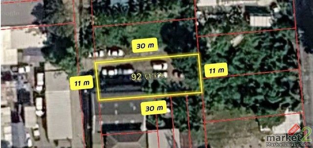รายละเอียดทรัพย์ เนื้อที่ 92 ตารางวา หน้ากว้างประมาณ 11 เมตร ลึกประมาณ 30 เมตร ถนนหน้าที่ดินกว้าง 5–6 เมตร
