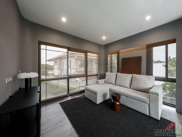 เนื้อที่ 43 ตารางวา พื้นที่ใช้สอย 214 ตารางเมตร จำนวน 3 ชั้น 2 ห้องนอน 3 ห้องน้ำ ที่จอดรถ 2 คัน มี 2 ห้องนั่งเล่น 1 ห้องทำงาน 1 ห้องครัว แอร์ทั้งหลัง ully furnished หน้ากว้าง 10 เมตร มี Double volume สูงโปร่ง