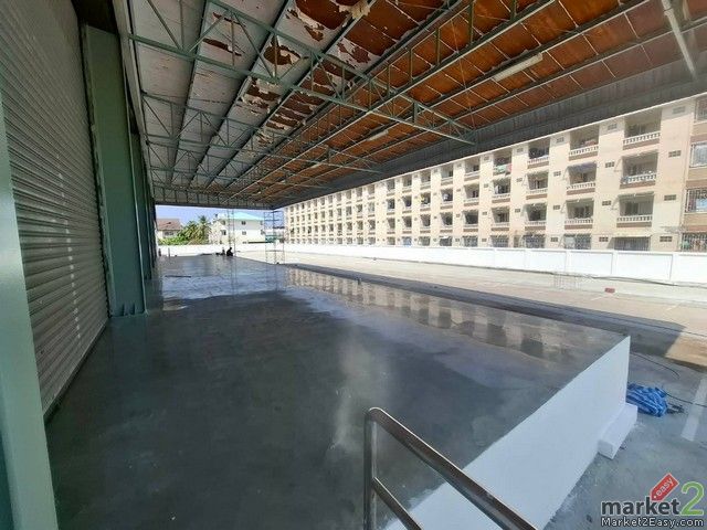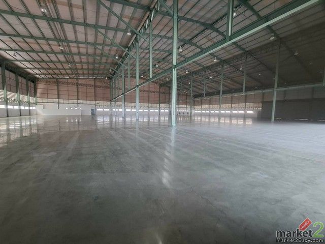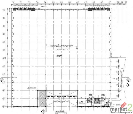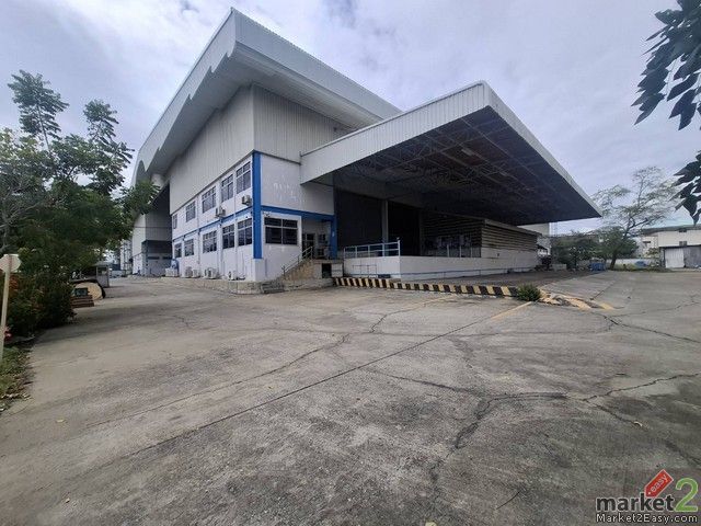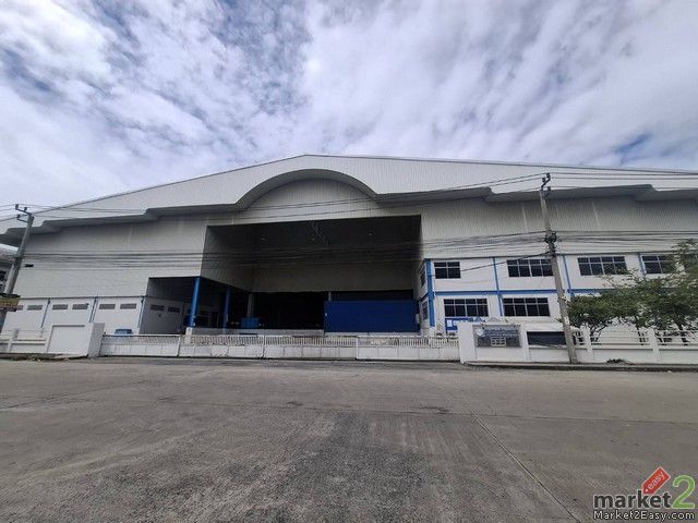 โรงงานให้เช่า พื้นที่สีม่วง ซอยวัดบัวโรย บางนา-ตราด กม.23 ขาออก รายละเอียดพื้นที่ อาคารรวม 5,508 ตร.ม. (ชั้นล่าง 5,364 ตร.ม. + ชั้นบน 144 ตร.ม.) พื้นที่ Office ชั้น 1: 144 ตร.ม. พื้นที่ Office ชั้น 2: 144 ตร.ม. รวม Office: 288 ตร.ม. ที่ดิน 6 ไร่ + 371.5 ตร.ว. สเปคอาคาร รับน้ำหนักพื้น 3 ตัน/ตร.ม. ความสูงเพดาน 12 เมตร (Clear Height) 4 Dock ตู้คอนเทนเนอร์ 40 FT (พื้นยก 1.50 เมตร) 7 Dock รถกระบะ