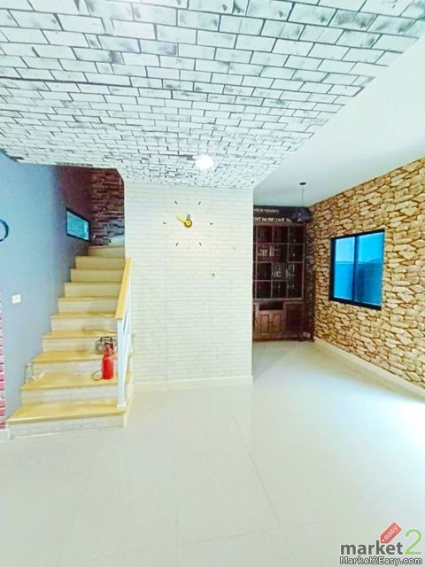 TherdRatchan DonMueang 3a/c The last units in the project. Two story townhome 3bed 2bath near PhraHaruthai DonMueang Sch 900m. quality project 19sq.wa. 152sq.m. 14,899B-M partially furnished good suitable for residence or home office convenient transportation near Don Mueang New Market 1.5km. temple airport and Red Line Skytrain connected to main roads
