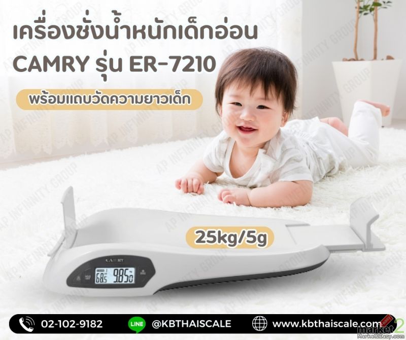 เครื่องชั่งน้ำหนักเด็กทารก เครื่องชั่งเด็กอ่อน พิกัด 25kg ค่าละเอียด 5g เครื่องชั่งดิจิตอล ตาชั่ง ยี่ห้อ CAMRY รุ่น ER-7210 พร้อมแถบวัดความยาวเด็ก