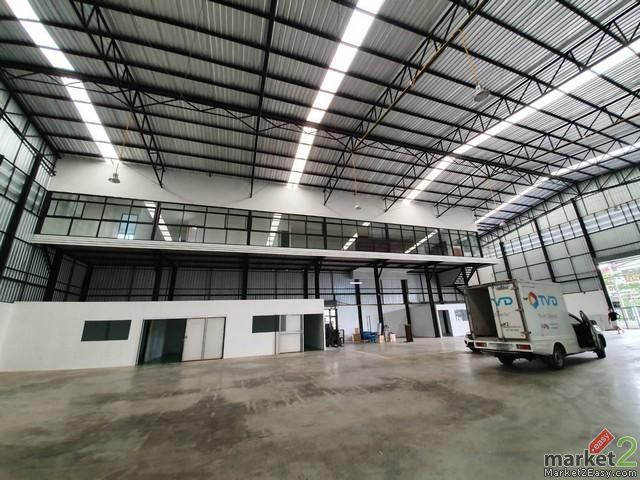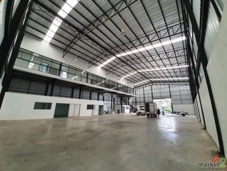 โกดังขนาดพื้นที่ 1,300 ตรม. ออฟฟิศ 8 ห้องน้ำ รถเทรนเลอร์และรถพ่วง เข้าได้สบายมาก ความสูงเพดาน 9 เมตร ไฟ 3 เฟส รับน้ำหนักได้ 3 ตัน/ตร.ม. 8 ที่จอดรถ ถ้าต้องการจอดเพิ่ม สามารถจอดฝั่งตรงข้ามโกดังได้
