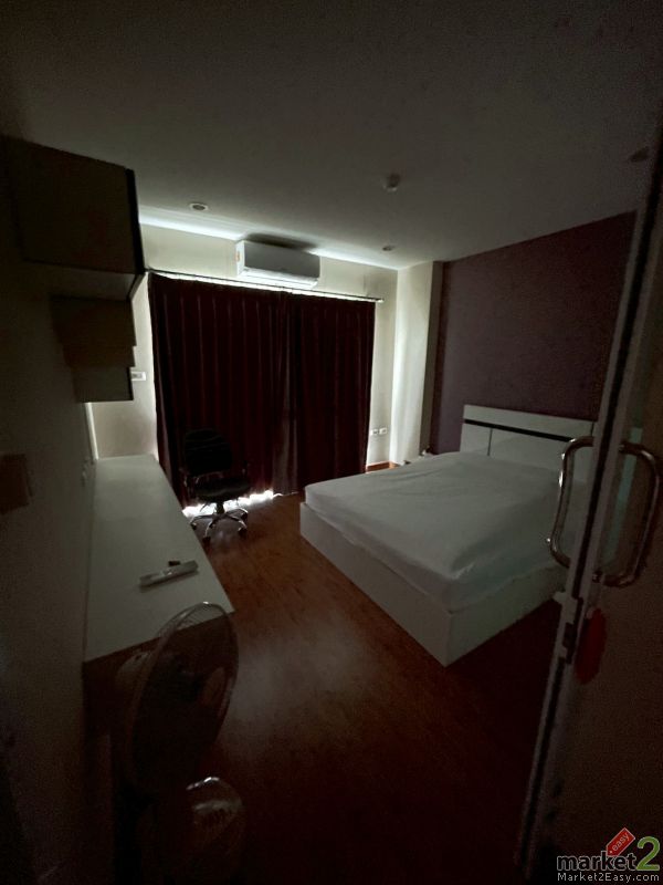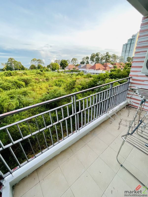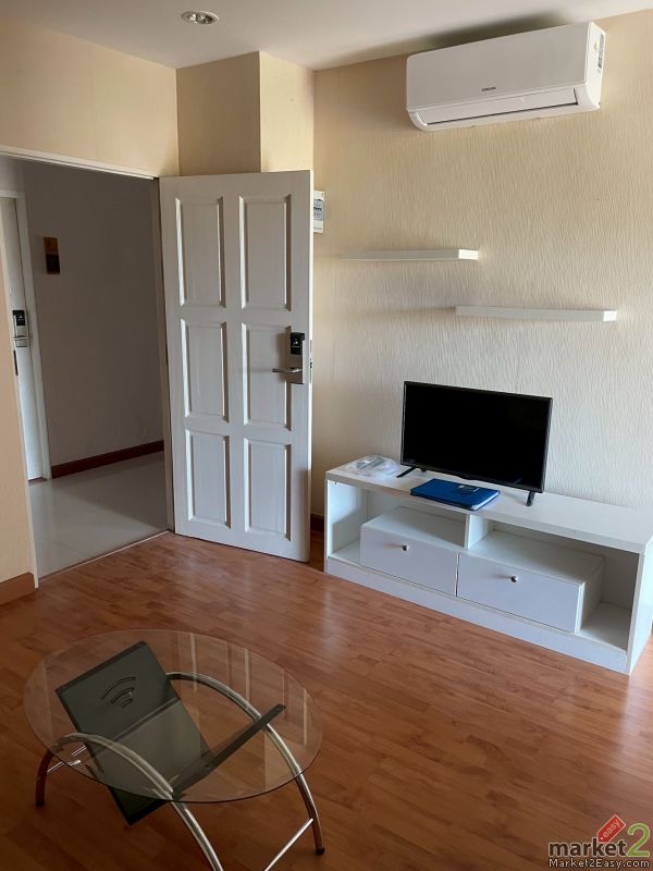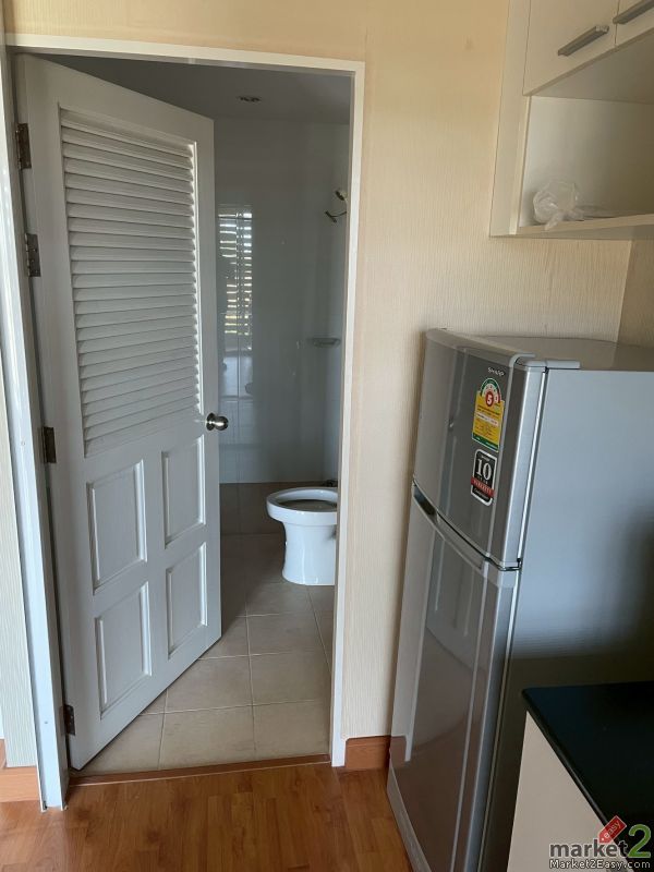 One-bedroom unit on the 3rd floor. 43.2 square meters. Fully furnished. Bedroom with air conditioning, wardrobe, wall shelves and curtains. Bathroom with shower and water heater. 2 balconies. Living room with air conditioning, table, sofa and television. Kitchen with refrigerator, microwave oven, sink and cabinets. Washing machine. Sea view. The condominium has staff and technicians, lifts, lobby, 1 swimming pool, 1 exercise room and car park. Accessible via both Sukhumvit Road and seaside road.