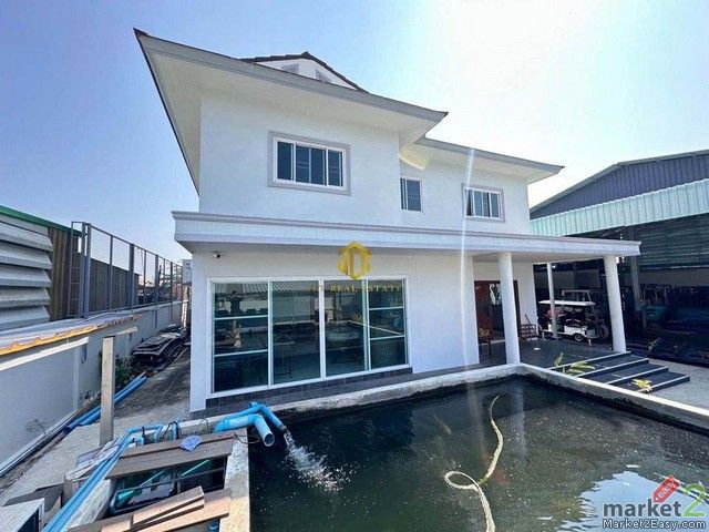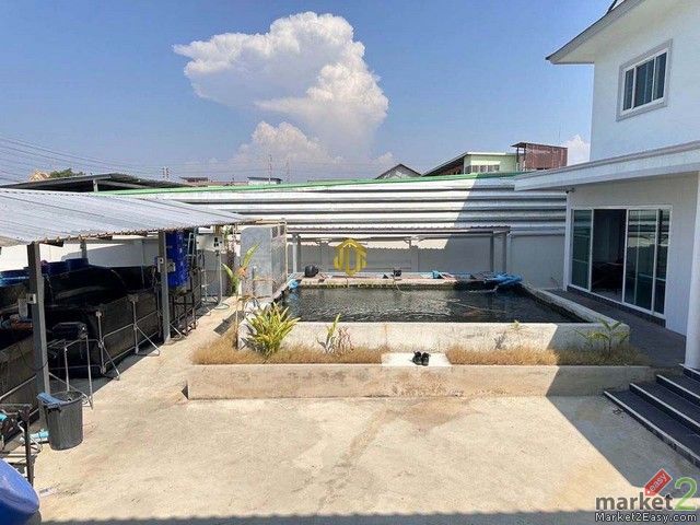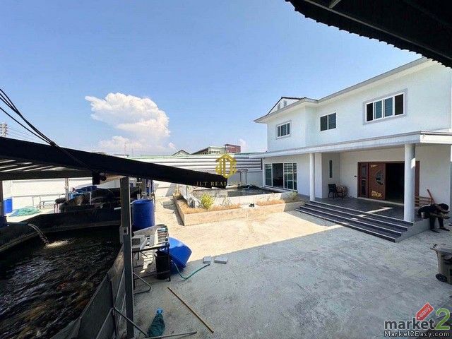 พื้นโกดังตอกเสาเข็มแน่น รับน้ำหนักได้เยอะ มีสำนักงาน 5-6 ห้อง มีบ้าน 2 ชั้น บ่อปลาคราฟ ไฟฟ้า 3 เฟส น้ำประปา รถเทรลเลอร์เข้าออกได้