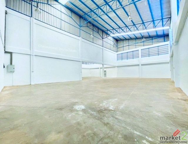 Warehouse factory for rent with a 2 story office 2 bed 2 bath near Thai Watsadu Bang Bon 800 m. and Wat Pho Chae Spacious and airy warehouse 215 sq.wa. 860 sq.m. 78,999 B-M. Factory license Rong 4 obtainable 3 phase electricity Suitable for business and manufacturing Convenient location in Ekachai Bang Bon easy access to multiple routes near Pho Chae market 1.2 km.