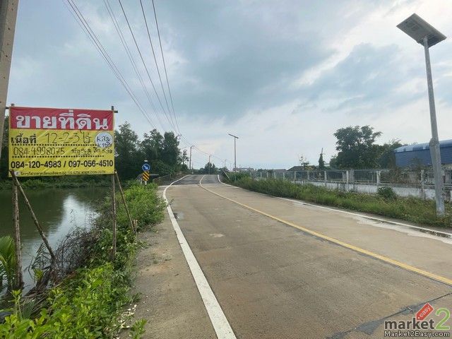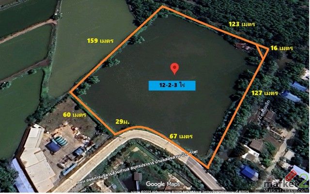 รายละเอียด: • ขนาดที่ดิน 12 ไร่ 2 งาน 3 ตารางวา (รวม 5,003 ตร.ว.) • หน้ากว้างติดถนนประมาณ 96 เมตร ลึกประมาณ 159เมตร • สภาพปัจจุบันเป็นบ่อเลี้ยงหอยแครง ระดับพื้นต่ำกว่าถนนประมาณ 1.5 เมตร • สามารถถมได้ ไม่ได้ลึกมาก ประมาณ เมตรกว่าๆ