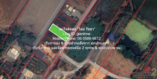 1. ที่ดินรูปทรงสี่เหลี่ยมผืนผ้าติดถนนเป็นโฉนด (น.ส.4 จ) ที่มีเนื้อที่ 0-1-0 ไร่ (100 ตร.ว.) ติดถนนคอนกรีตกว้าง 5 ม.