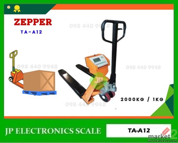 เครื่องชั่งรถยกพาเลท2000kg, เครื่องชั่งแฮนด์พาเลท2ตัน, เครื่องชั่งแฮนลิฟท์ , เครื่องชั่งน้ำหนักสินค้ารถพาเลท, เครื่องชั่งรถพาเลท 2ตัน ,ค่าความละเอียด 1kg, ยี่ห้อ ZEPPER รุ่น TA-A12, (Hand Pallet Scale)