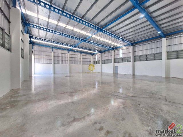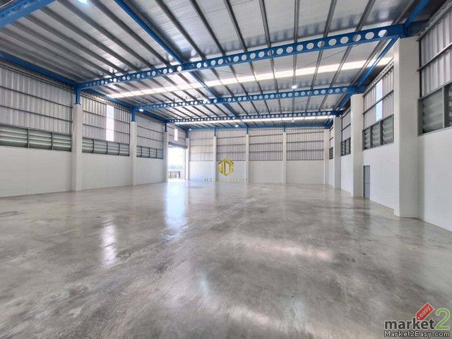 โรงงาน L พื้นที่ใช้สอยรวม 1000 ตรม. พื้นที่โรงงานขนาด 830 ตรม. (60x32) พื้นโรงงานรับน้ำหนัก 2 ตัน/ตรม. พื้นที่ออฟฟิศ 170 ตรม. เนื้อที่ทั้งหมด 1 ไร่ 75 ตารางวา ราคาขาย 31,800,000 บาท ราคาเช่า 180,000 บาท/เดือน