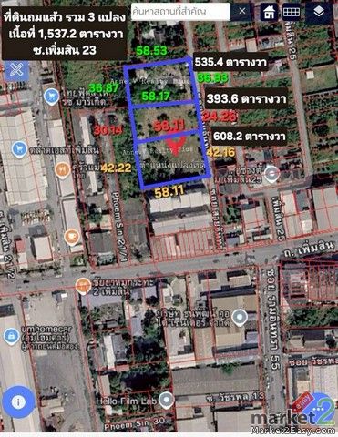 รายละเอียด -เนื้อที่ 3 ไร่ 3 งาน 37.2 ตารางวา (1,537.20 ตร.ว.) -กว้าง : 106 เมตร ลึก : 58 เมตร -ที่ดินถมแล้ว พร้อมสร้าง ล้อมรั้วเรียบร้อย -เหมาะสร้าง คอนโด อพาร์ทเม้นท์, ออฟฟิศ, สำนักงาน, บ้านอยู่อาศัย