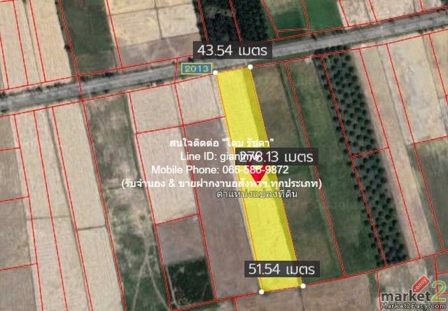 รายละเอียดทรัพย์ที่ขาย: ที่ดินติดถนนทางหลวงหมายเลข 2013 เนื้อที่ 7-2-10 ไร่ (3,010 ตร.ว.)