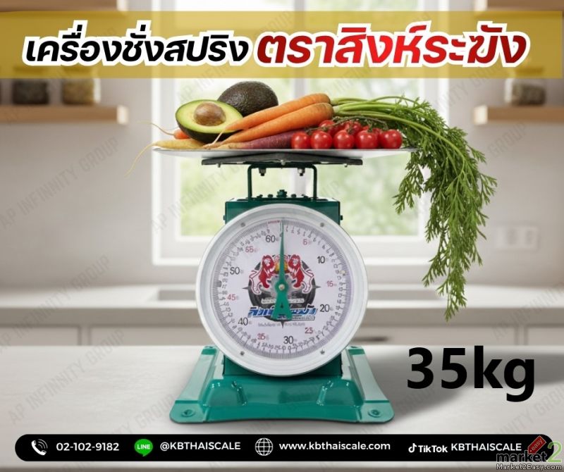 ตาชั่งสปริงแบบเข็ม เครื่องชั่งเข็ม เครื่องชั่งสปริง เครื่องชั่งตลาด เครื่องชั่งผักผลไม้ ตาชั่งสิงห์ธงชัย เครื่องชังหน้าปัดเข็ม พิกัด35kg ละเอียด 100g สิงห์ รุ่น สิงห์ระฆัง 35กิโล