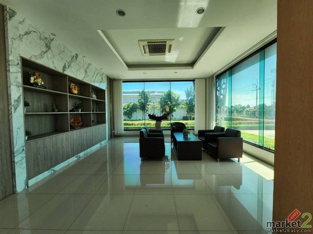 (รหัสทรัพย์ : 30066) ตั้งอยู่ที่ ซ.หทัยราษฎร์ 61 ใกล้จุดตัดของถนนหทัยราษฎร์ กับ ถนนกาญจนาภิเษก การเดินทางสะดวก เชื่อมต่อกับแหล่งพาณิชยกรรม แหล่งชุมชนมากมาย โดยทางด่วน ฉลองรัช สิ่งปลูกสร้างทั้งหมด สร้างมาเพียง 5 ปี และบางส่วนของพื้นที่ ยังไม่เคยมีการใช้งานเลย อาคารสำนักงาน ตกแต่งแล้ว พร้อมใช้งาน ทุกพื้นที่ในอาคาร มีเครื่องปรับอากาศ ฝังฝ้า ที่กระจายลม สี่ทิศทาง ประกอบด้วย พื้นที่สำนักงานที่วาง เลย์ เอ๊าท์ไว้อย่างลงตัว ไม่ว่าจะเป็น พื้นที่ทำงานของพนักงาน ห้องประชุมเล็ก – ใหญ่ ห้องผู้จัดการระดับต่างๆ ห้องผู้บริหาร และห้องน้ำ แยกชาย-หญิง ทุกขั้น ตั้งแต่ชั้น 1 – 4 โดยที่ ชั้น 5 เป็นโชนที่อยู่อาศัยทั้งชั้น โดยมีห้องนอนที่มีห้องน้ำในตัว ขนาด 4 ห้อง ทั้งนี้ยังไม่รวมโซน นั่งเล่น และโซนครัวที่แยกออกเป็นสัดส่วน ส่วนของอาคารโรงงาน เป็นอาคารคอนกรีตเสริมเหล็ก ขนาดกว้าง 18 เมตร ยาว 35 เมตร ทั้ง 2 ชั้น สามารถจัดสรรพื้นที่ใช้สอยได้อย่างเต็มประสิทธิภาพ ไม่ว่าจะวาง เครื่องจักร หรือ จะเป็นที่วาง หรือ คัด วัตถุดิบ คุ้มค่า ในทุกตารางเมตร ของการใช้สอย