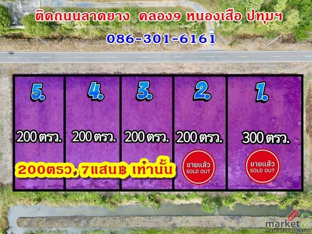 ถูกจัด ที่ดินใกล้กรุงฯ ติดถนนลาดยาง 200ตรว.7แสน฿ คลอง9หนองเสือ ปทุมฯ 086-301-6161