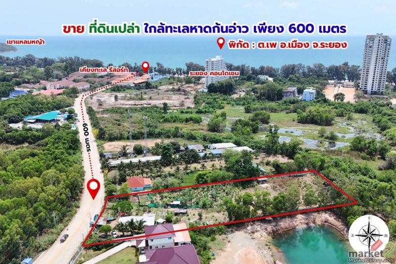 ขายที่ดิน เนื้อที่ 4 ไร่ ในทำเลทอง 500 เมตร ถึงหาดทรายเเม่รำพึง (ก้นอ่าว) โฉนดครุฑเเดง นส4จ พร้อมโอน