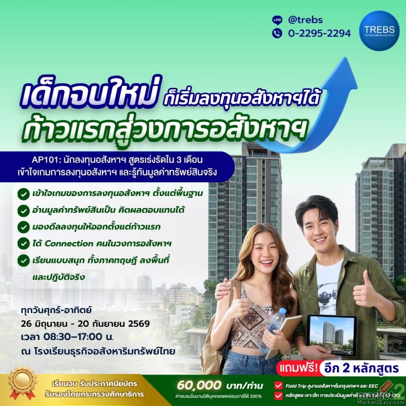 หลักสูตร นักลงทุนอสังหาฯ สูตรเร่งรัดใน 3 เดือน (AP101)! รู้จริง ลงลึกต้นทุน มูลค่าทรัพย์สิน แบบจับมือทำ!!!