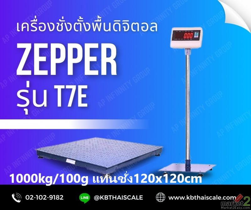 ตาชั่งดิจิตอล เครื่องชั่งวางพื้น1ตัน 1000กิโล ละเอียด100g ยี่ห้อ ZEPPER รุ่น T7E-FW120X120 ขนาดเเท่นชั่ง 120x120 CM. พร้อมสายลากยาว 5 เมตร (ระยะสายจากแท่นถึงหัวอ่าน)