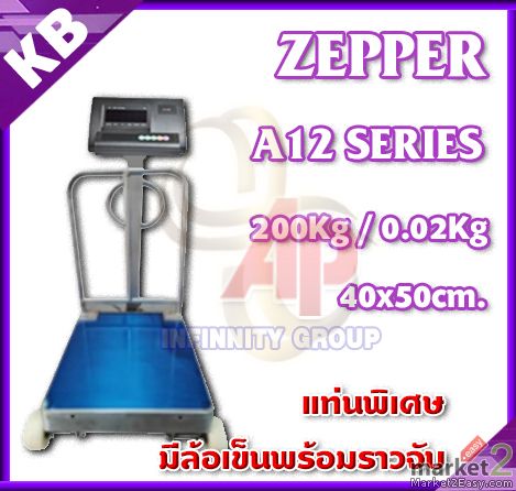 เครื่องชั่งมีล้อ เครื่องชั่งเข็นได้ เครื่องชั่งพร้อมล้อ 200กิโลกรัม ตาชั่งดิจิตอล เครื่องชั่งดิจิตอล เครื่องชั่งดิจิตอลมีล้อ เครื่องชั่งดิจิตอลพร้อมล้อเข็น 200Kg เครื่องชั่งตั้งพื้น 200kg ความละเอียด 20g ZEPPER A12-ER4050-200 แท่นขนาด 40x50cm.