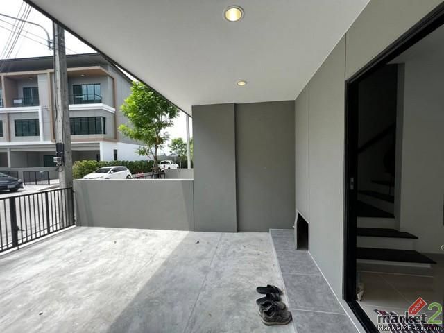 หน้าบ้านหันทางทิศเหนือ บ้านเปล่า บ้านเลขที่เรียกทรัพย์ สวย โมเดิร์น หลังใหญ่ ติดถนนเทพารักษ์ ใกล้ทางด่วน ใกล้รถไฟฟ้าสายสีเขียวสถานีสายหยุด เงียบสงบเป็นส่วนตัว